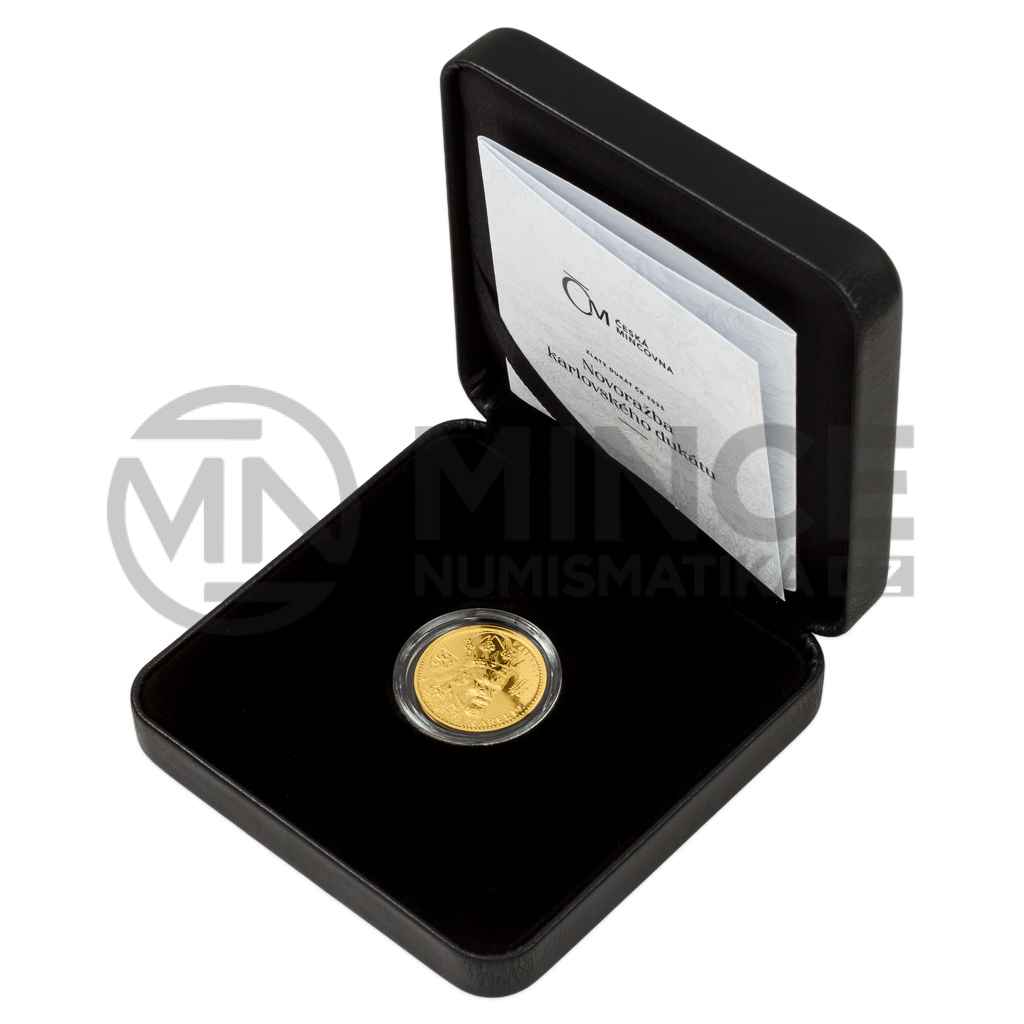 Tématem karlovského jednodukátu byla osobnost. Dle zadání mělo být vyobrazení Karla IV. inspirováno například bustou, která se nachází v triforiu katedrály svatého Víta, nebo sochou ze Staroměstské mostecké věže Karlova mostu. Realizován byl návrh Petra Formánka, který předkládá tříčtvrteční portrét panovníka, štít s českým lvem, gotickou iniciálu K, jméno KAREL IV. a letopočty 1346–1378, kdy byl Lucemburk českým a římským králem a posléze i římským císařem. Repliku zpracovala medailérka Mária Filová, DiS.