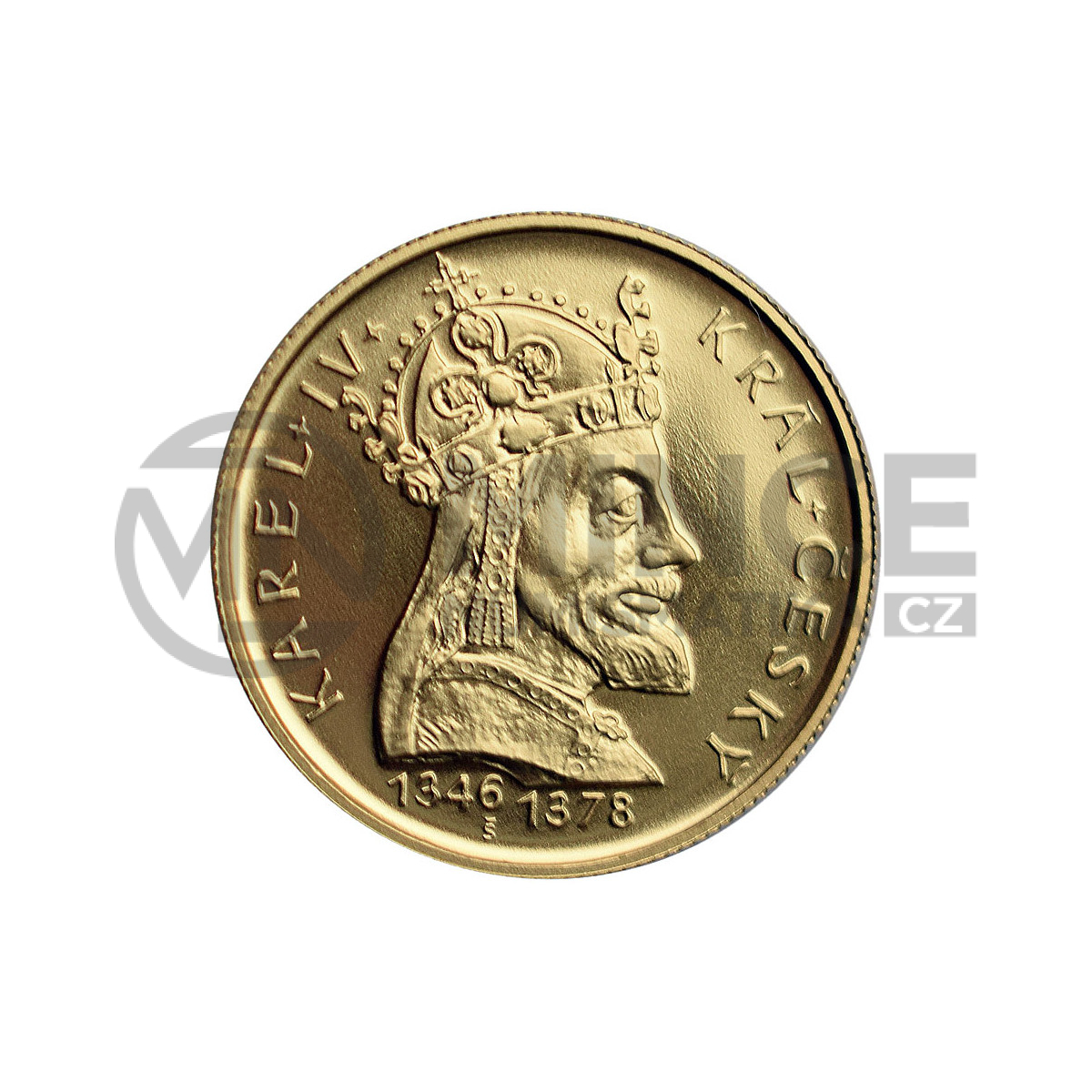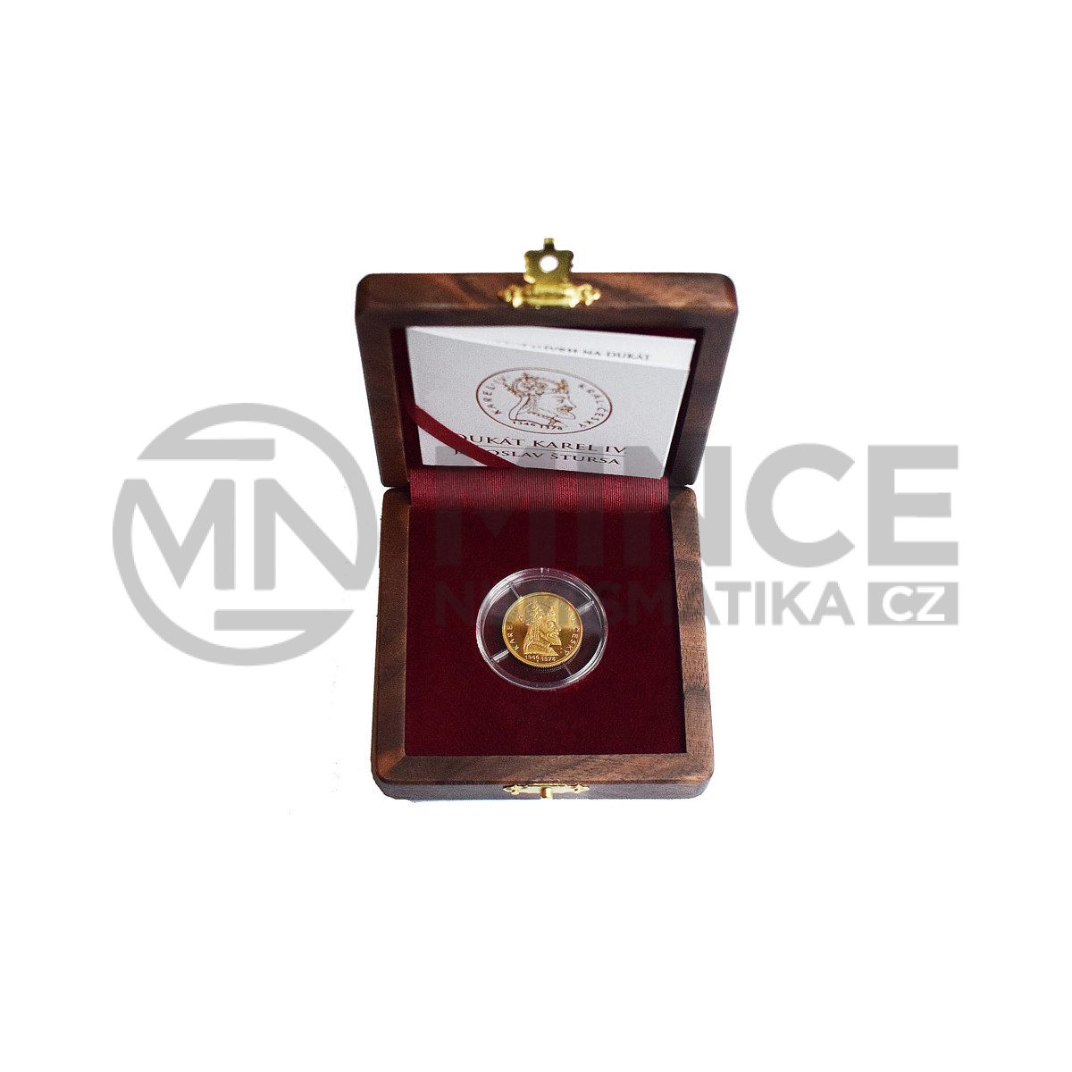 Zlatý dukát s motívom Karel IV. realizovaný z pôvodného výtvarného návrhu od majstra Jaroslava Štursu.