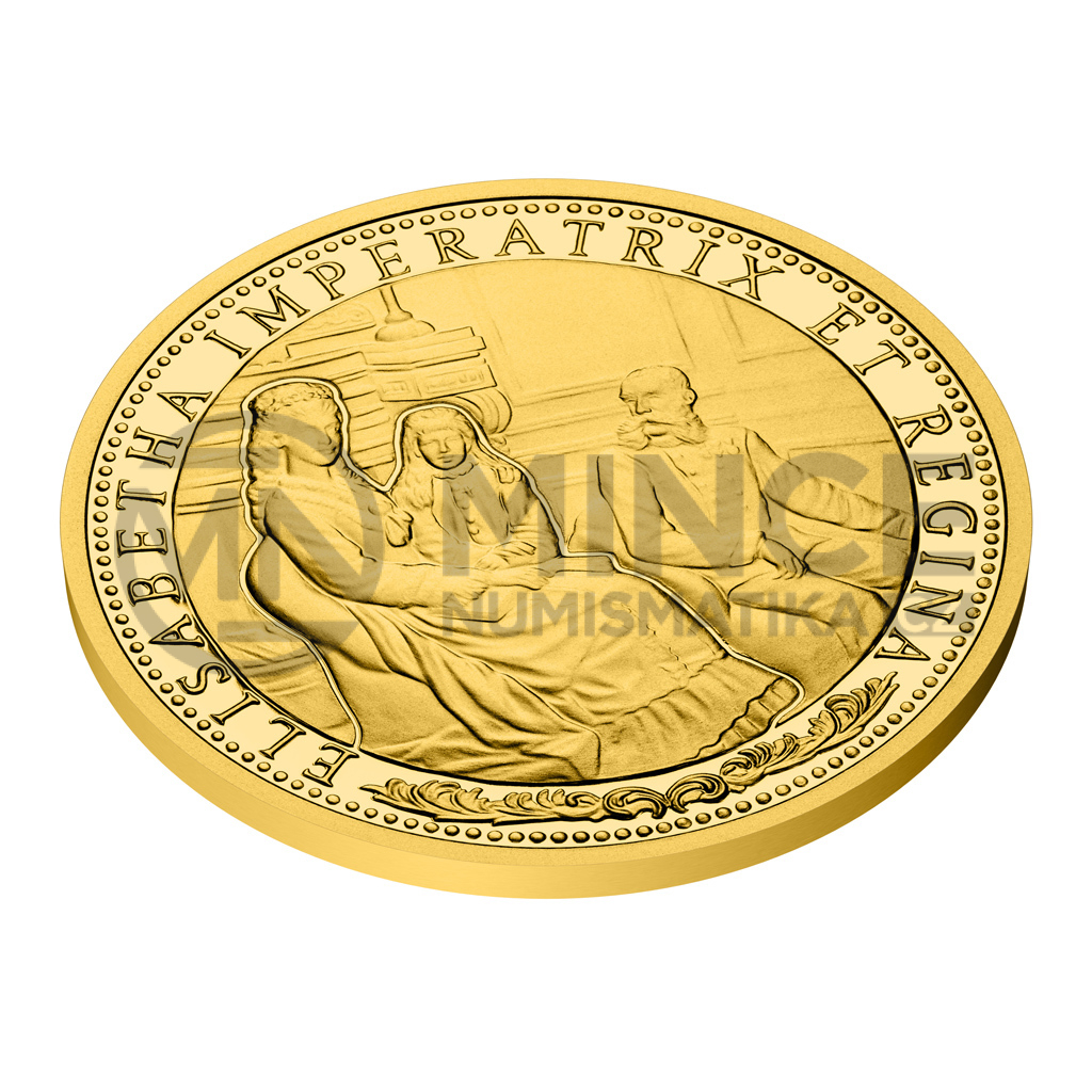 Averzní strana pětidukátu, který je dílem medailérky MgA. Petry Čánské, předkládá Sissi a její milovanou dceru Valerii. Sedí vedle nich i císař, ale odtažitost vládnoucího páru je jasně patrná. Reverzní strana pak nese erb císařovny, který v sobě spojuje symboliku rodů habsbursko-lotrinských a Wittelsbachů.